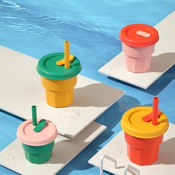 Garrafa de água de alimentação de bebê, copo portátil para bebês, leite transparente com canudo